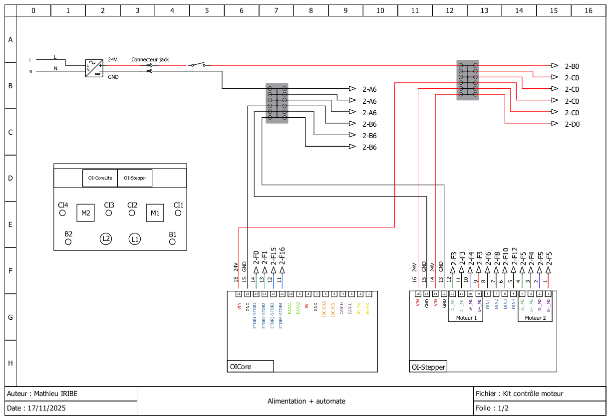 Theses electical diagrams show how the Core and Stepper modules are connected to the different components of the kit.
