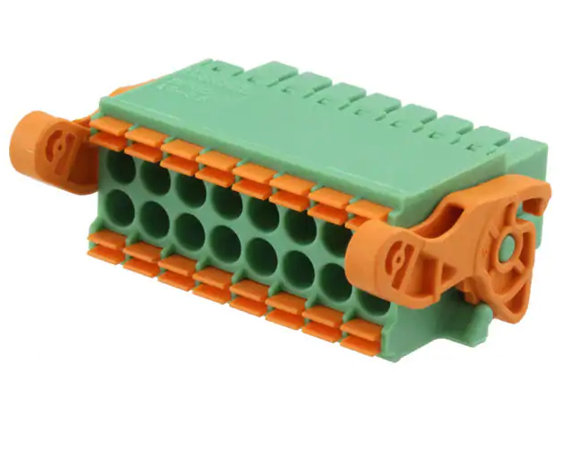 It is a 16 contacts board connector with a pitch of 3.5mm. It support wire cross section from 0.2mm² up to 1.5mm². You will need a flat-head screwdriver to release or lock wires.
