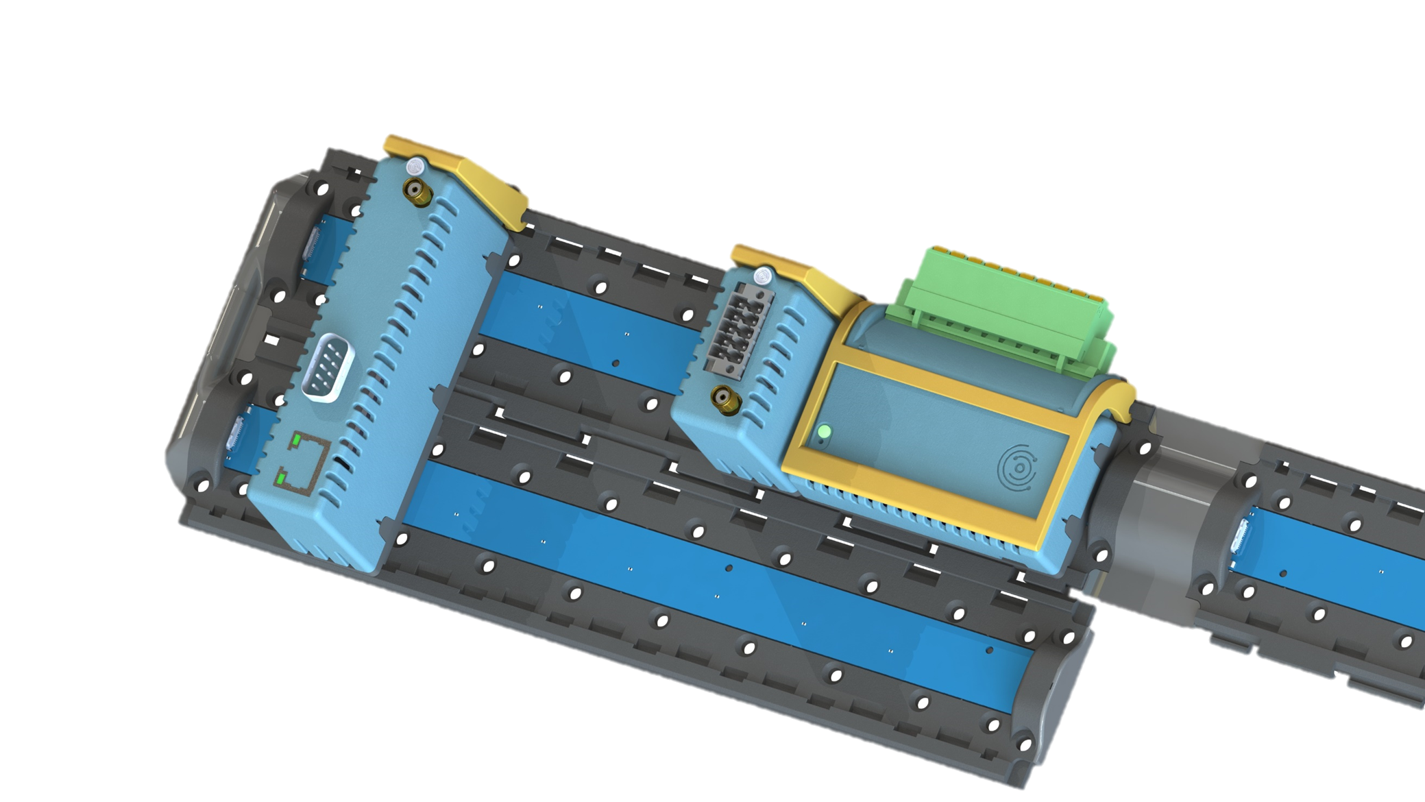 OpenIndus system use rails for communications between modules. You may wonder how to connect modules and rails together.