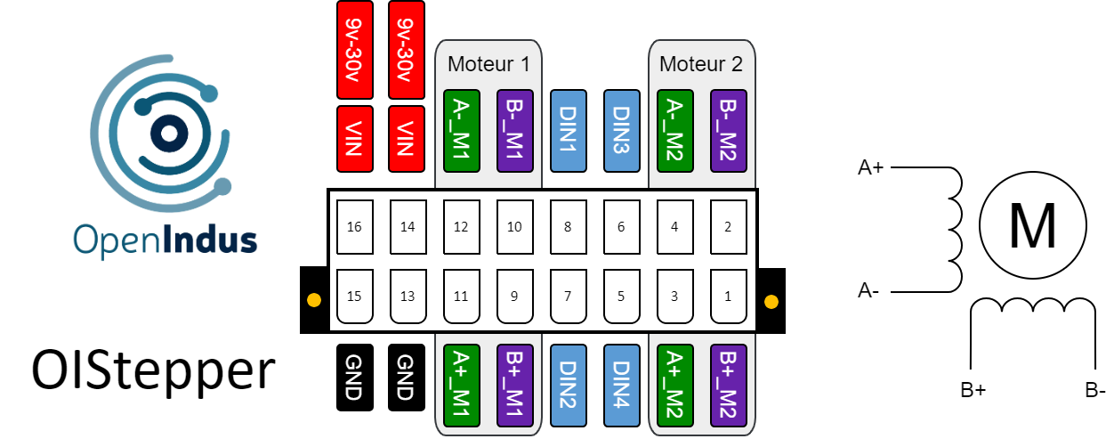 The OIStepper module is the OpenIndus product card designed to control 2 stepper motors with a maximum size of NEMA 24.